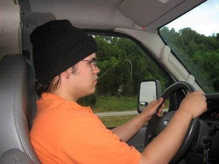 Mi hijo al volante. Solo guió una hora pues se asusto, se le nota verdad?