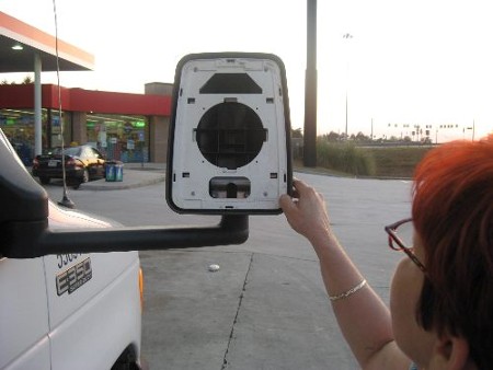 quitarle uno de los espejos retrovisores a mi carro, y lo pegue con duck tape y resolví bastante