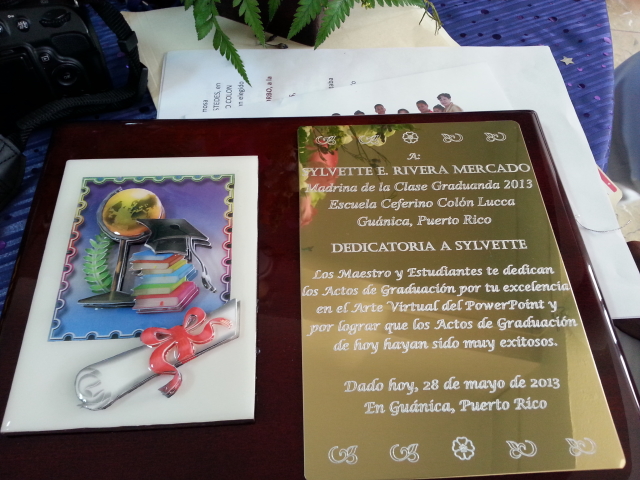 Syl: La maestra de la clase graduanda 2013 de la escuela Ceferino Colón Lucca de Guánica, los padres y graduandos acordaron dedicarte la Graduación a ti por tu inmensa colaboración para con ellos siempre, serás la madrina de la clase y queremos que estés en la graduación.